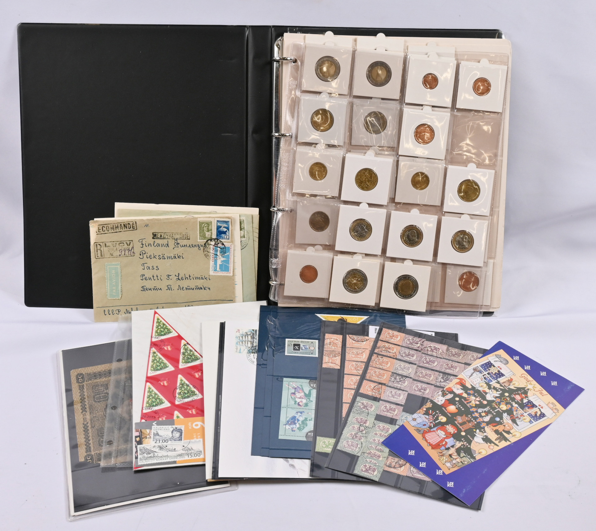 Pieni sekalainen erä numistatiikkaa ja filateliaa