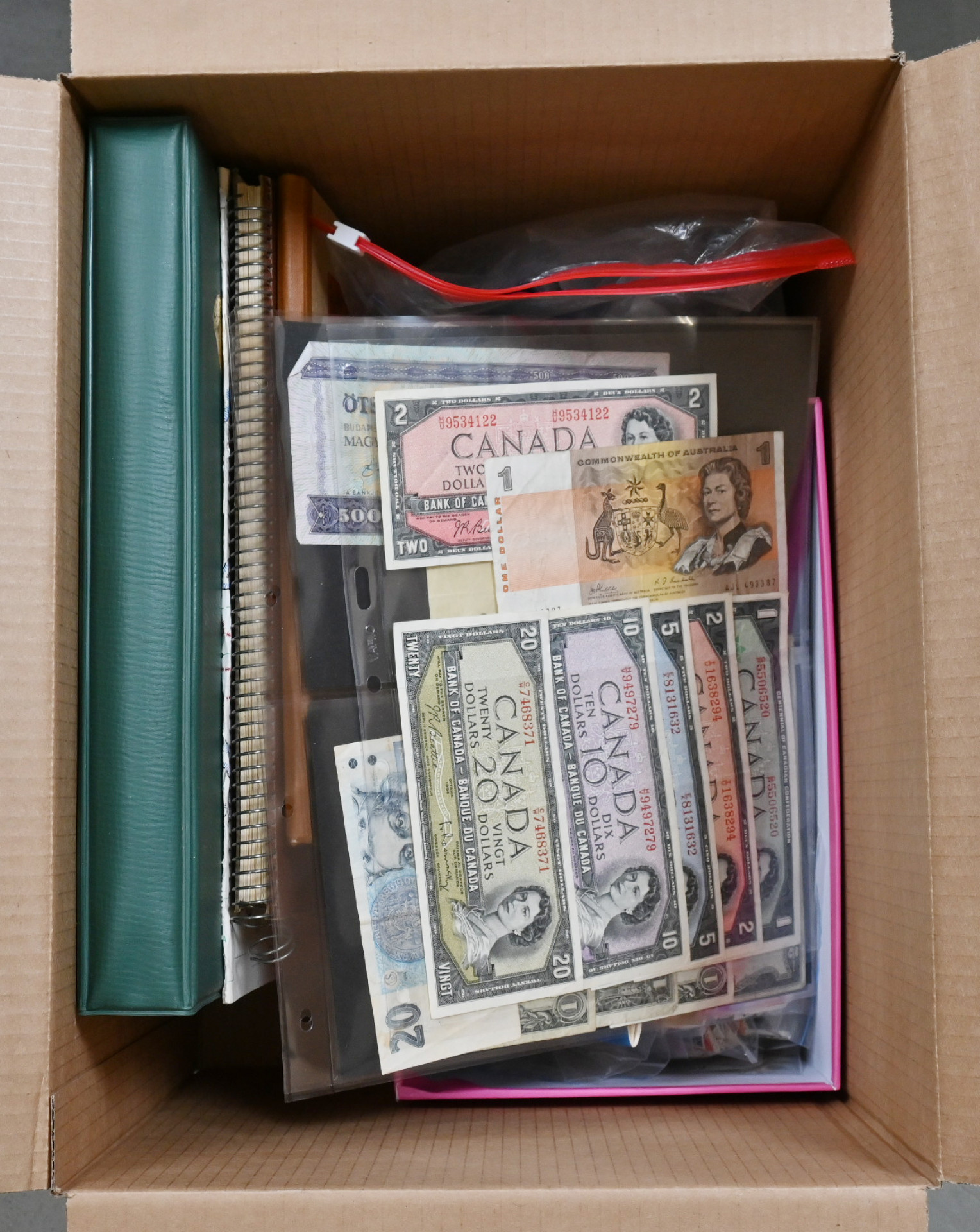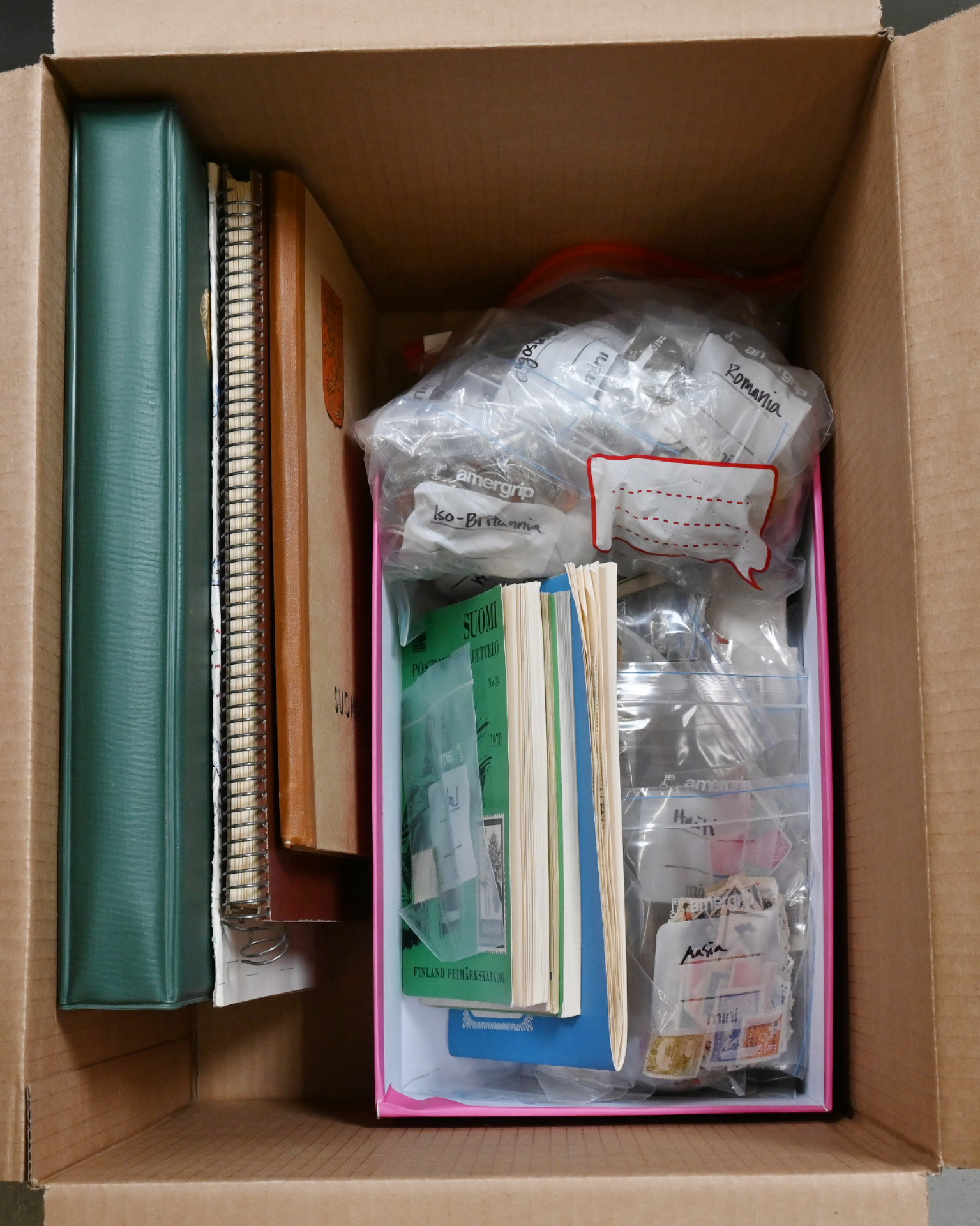 Sekalainen erä kolikoita ja seteleitä noin 1½ KG mm. jokunen juhlaraha alk. 1952. Lisäksi erä filateliaa noin 3 KG