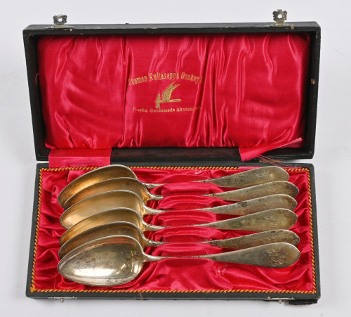 Ruokalusikat kuusi kpl hopeaa (813) kaiverruksin. Pituus noin 20 cm