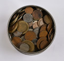 Tutkimuserä lähes 2,5 KG vanhoja suomalaisia kolikoita vanhassa peltisessä kahvipurkissa.