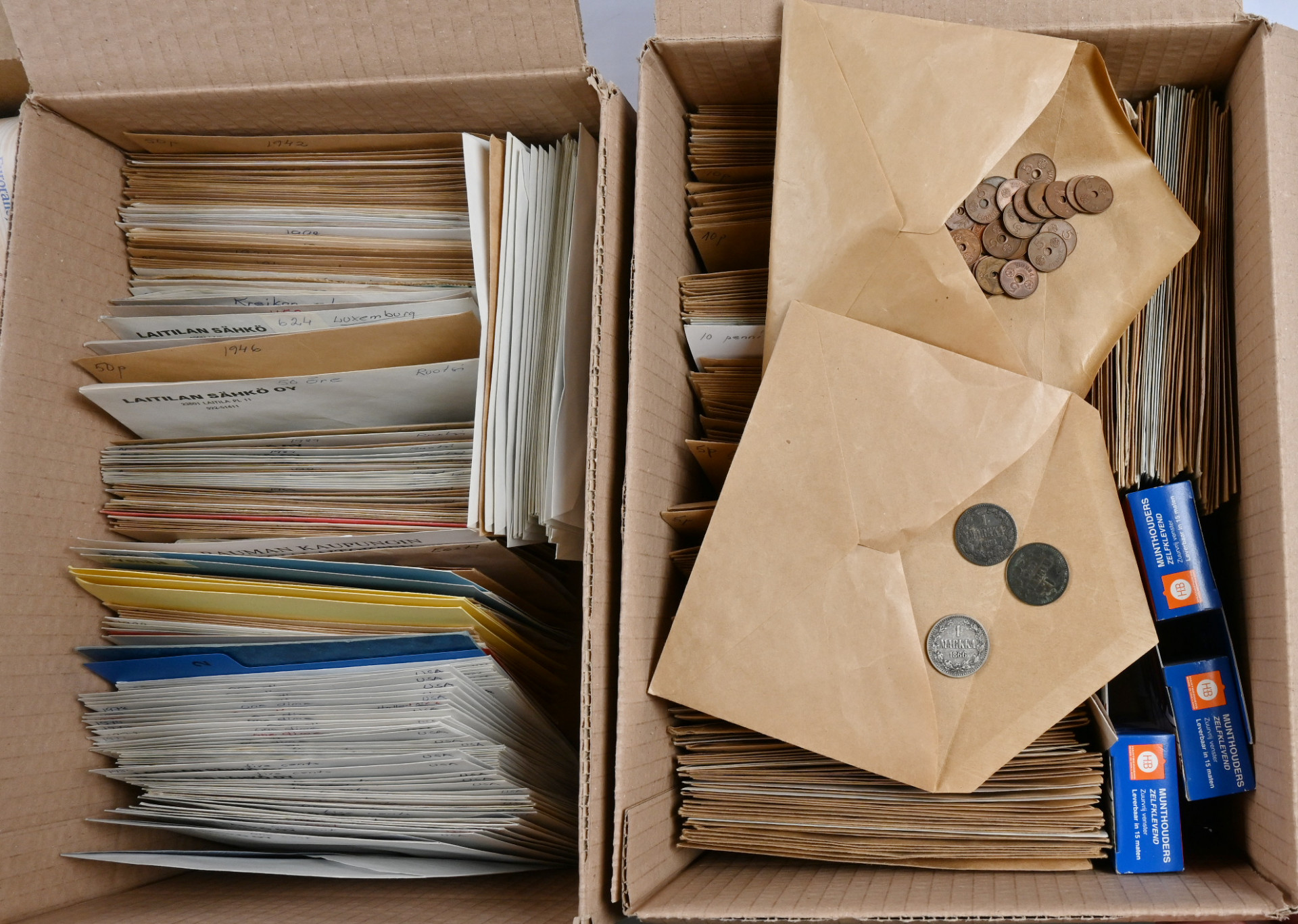 Ulkomaiden ja kotimaiden kolikkoja massaerä mm. hiukan eurokolikoita ja huonokuntoisia seteleitä. Yht. yli 18 KG kolmessa laatikossa