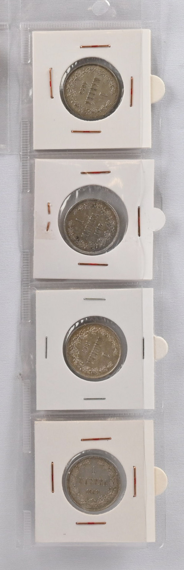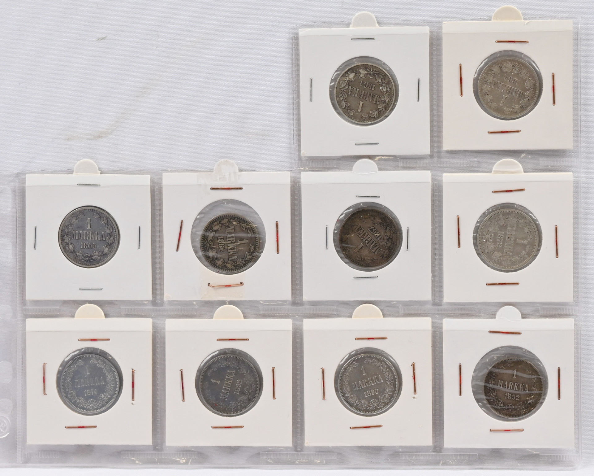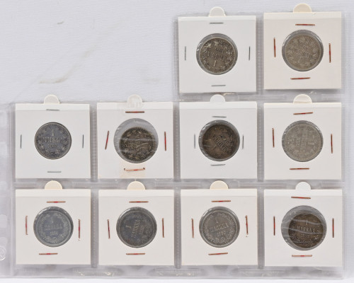 1864 - 1915 1 markka hopeaa kaunis erä 14 kpl mm. 1867 ym