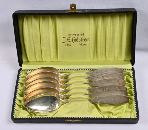 Ruokalusikat kuusi kpl hopeaa (813) kaiverruksin