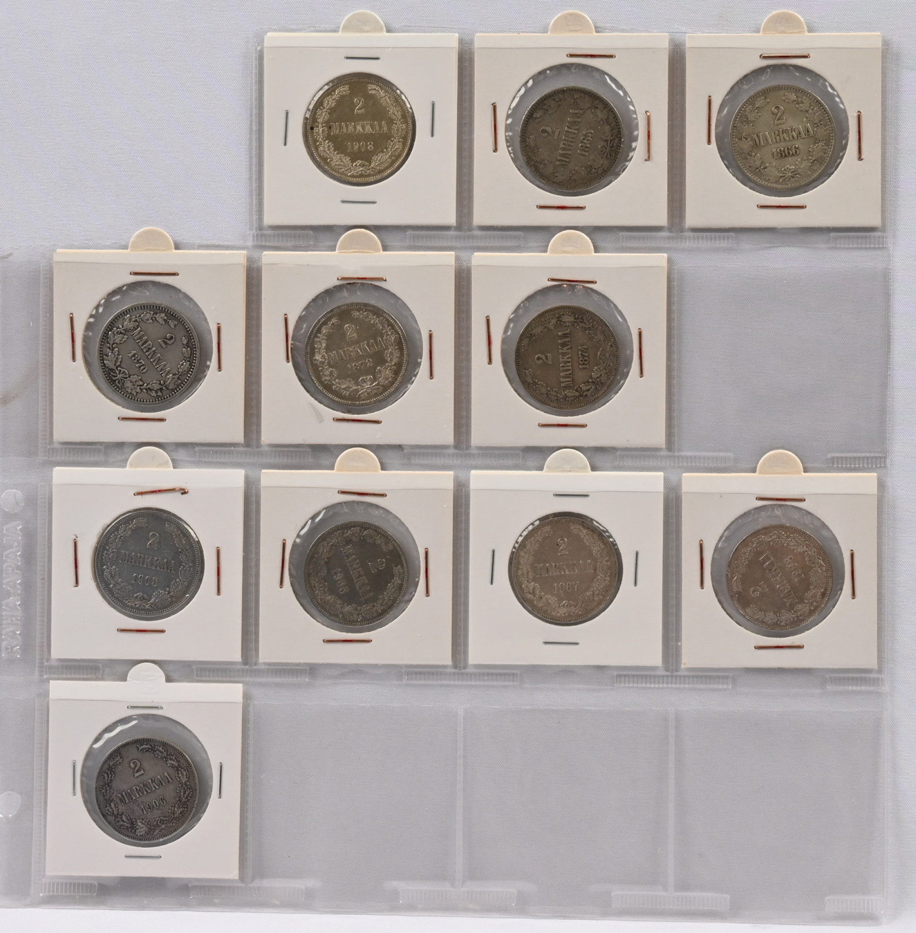 1865 - 1908 2 markka hopeaa hieno erä 11 kpl mm. 1905 ym