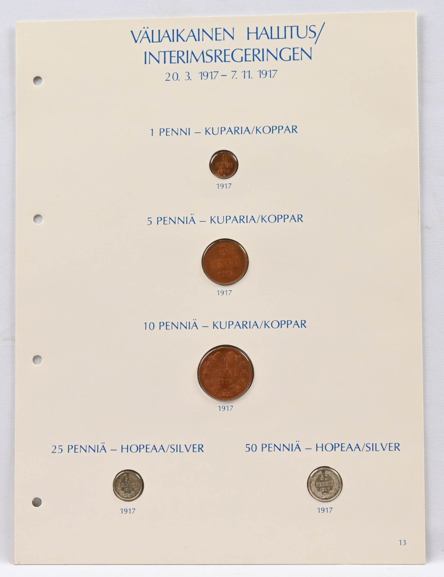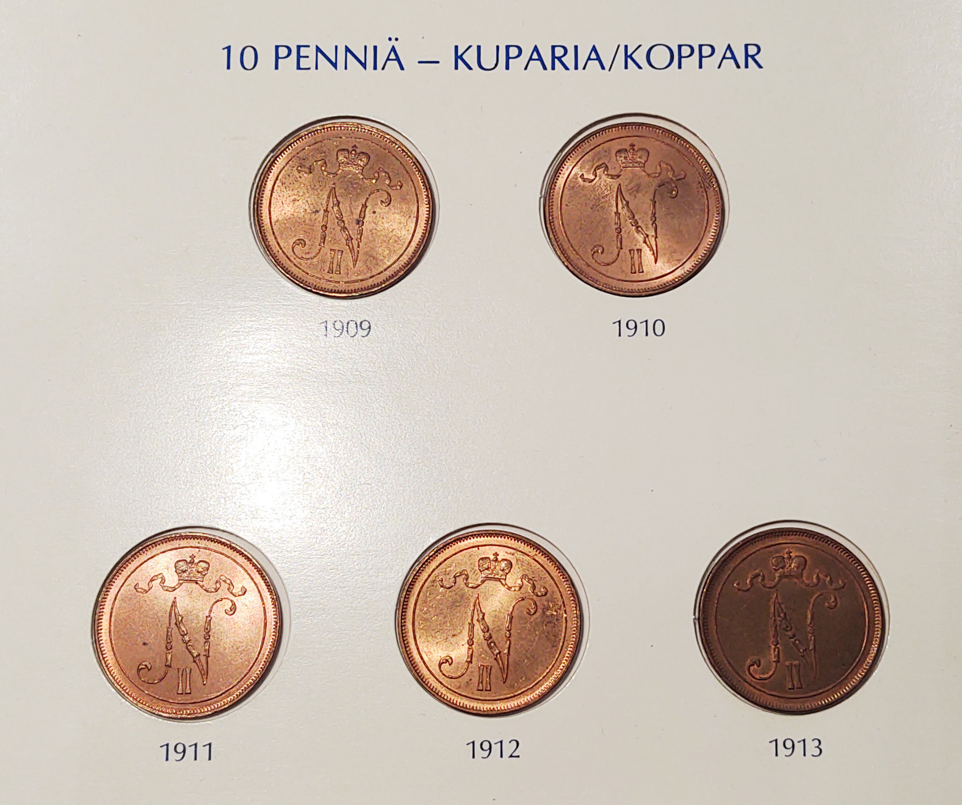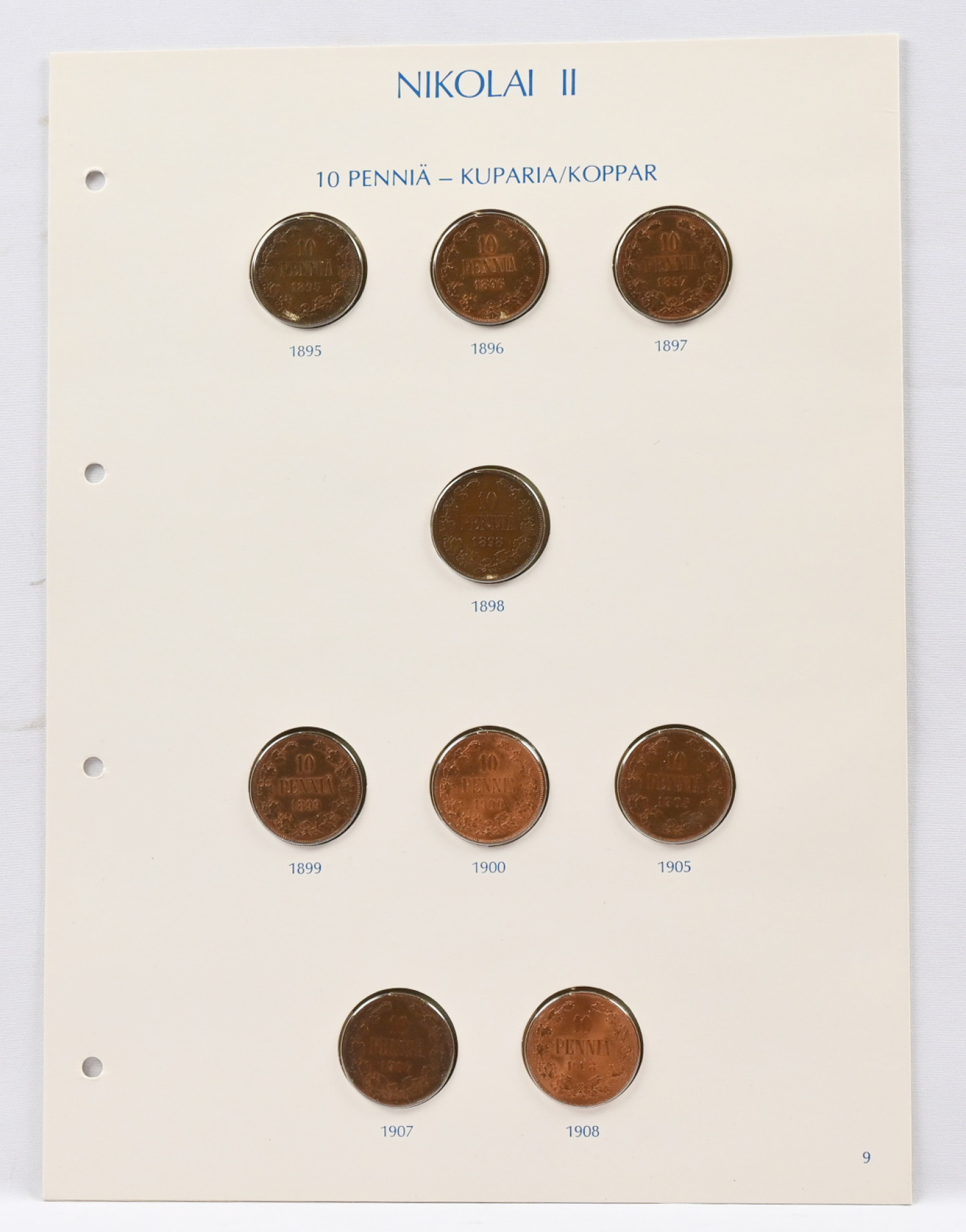 1895 - 1917 kokoelmaerä kolmella sivulla mm. 1898 10 penniä