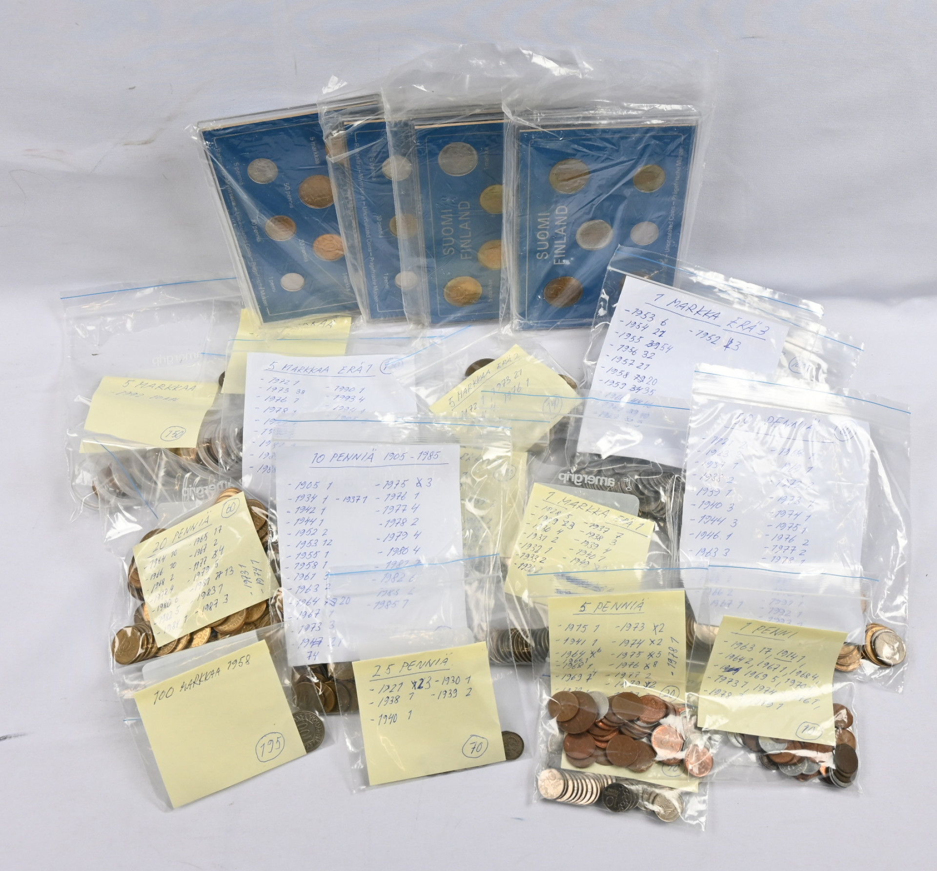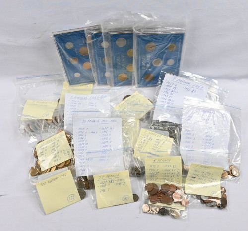 Erä itsenäisyyden ajan käyttökolikoita 1 penni - 10 markkaa yli 3 KG laatikoss