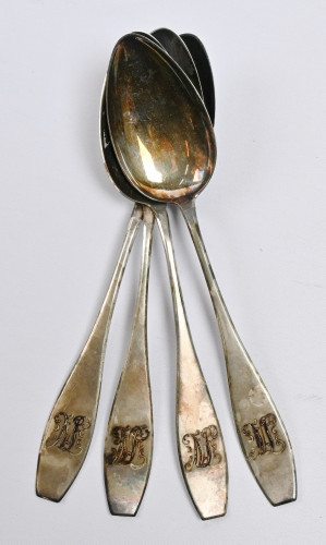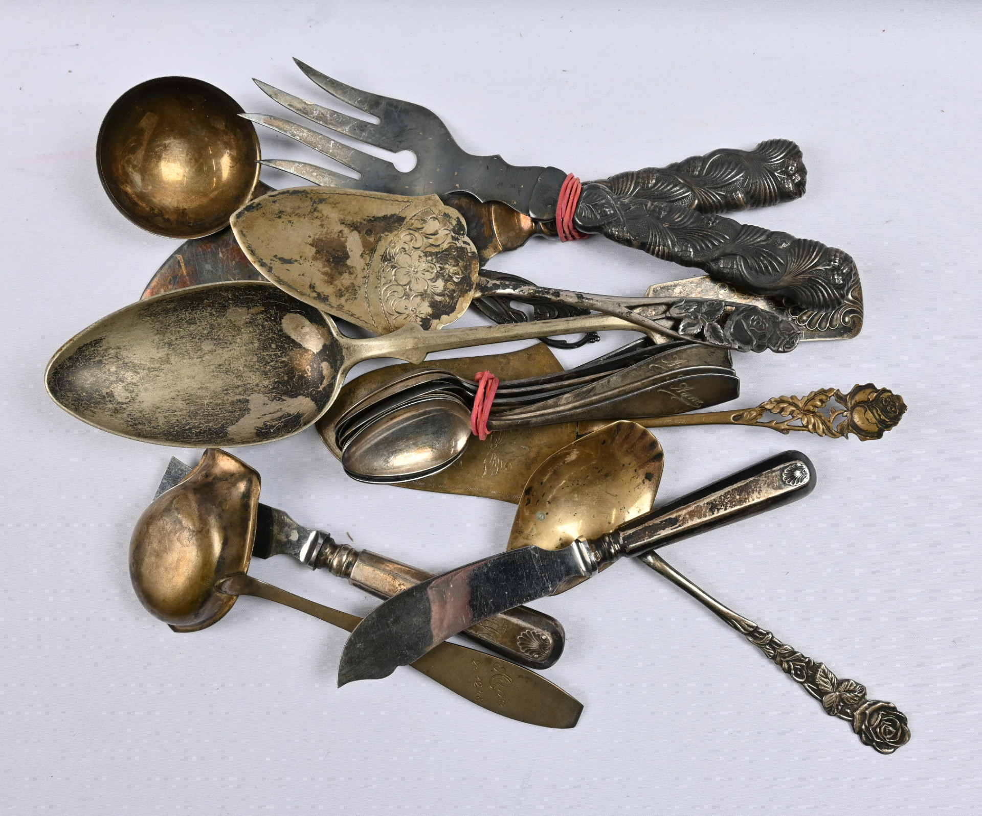 Ruokalusikoita neljä kpl hopeaa (813) ja kakkulapio ym lisäksi erä alpakkaa