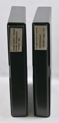 Kahdesa kansiossa hieno kokoelma: 1994 -2020 kokoelma kansiossa, johon kerätty proof sarjat eli 29 erilaista sarjaa! Mukana myös jetonit. Toisessa kansiossa 1999 - 2020 väliltä 17 sarjaa ym