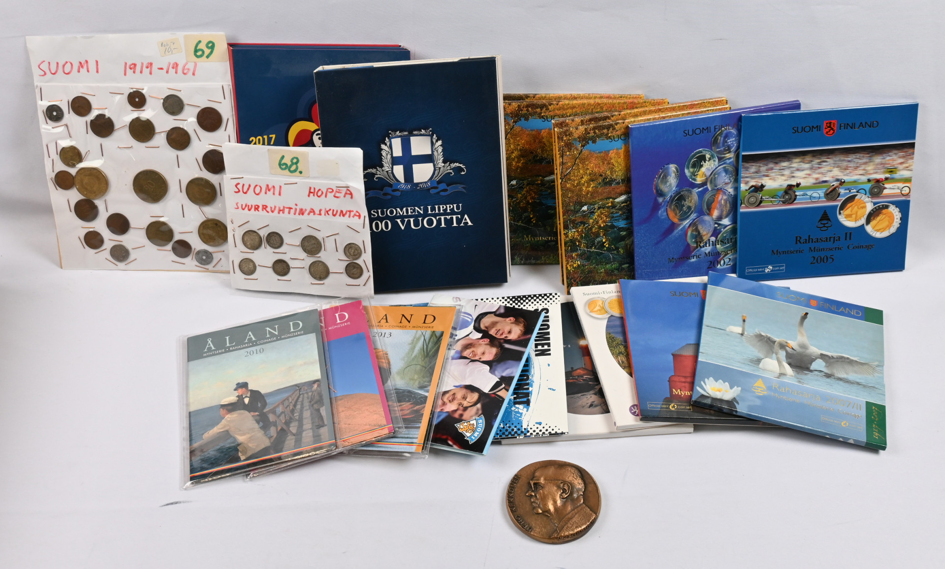 2002 - 2013 Eurokolikoiden vuosisarjoja 10 kappaletta, Ahvenanmaalta kolme kappaletta (2010, -12 ja -13). Lisäksi vähän vanhempia kolikoita, 2011 ”Suomen kiekkoleijonat” lajitelma, kullattu pronssiharkko ”Jääkiekon MM 2013”, Monetan mitaleita kuusi kappaletta ja vielä pronssiset Urho Kekkonen ja Mauno koivisto -mitalit