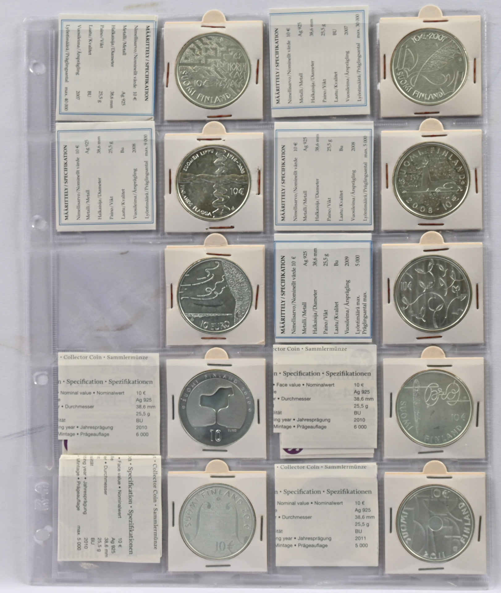 2007 - 2011 hieno erä juhlarahoja 10€ kymmenen erilaista!