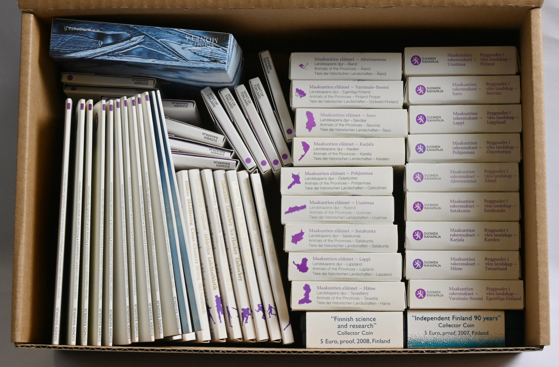 2007 - 2022 5 euron juhlarahoja 53 erilaista proof-laatuista alkuperäisissä pakkauksiss
