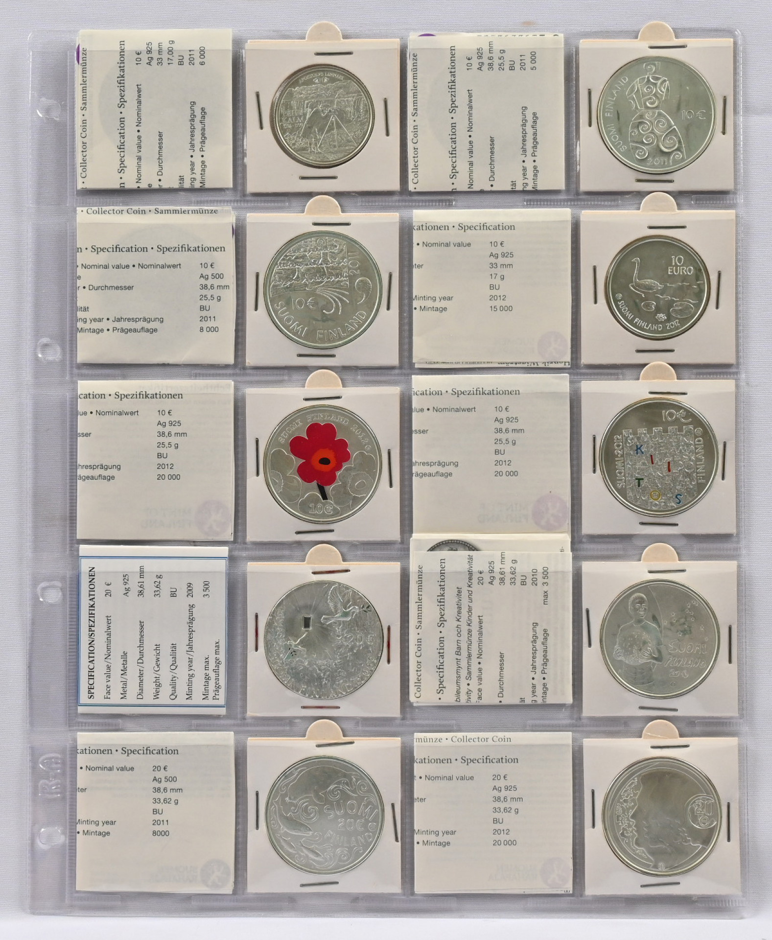 2009 - 2012 hyvä erä juhlarahoja 10€ kuusi erilaista ja 20€ neljä erilaista