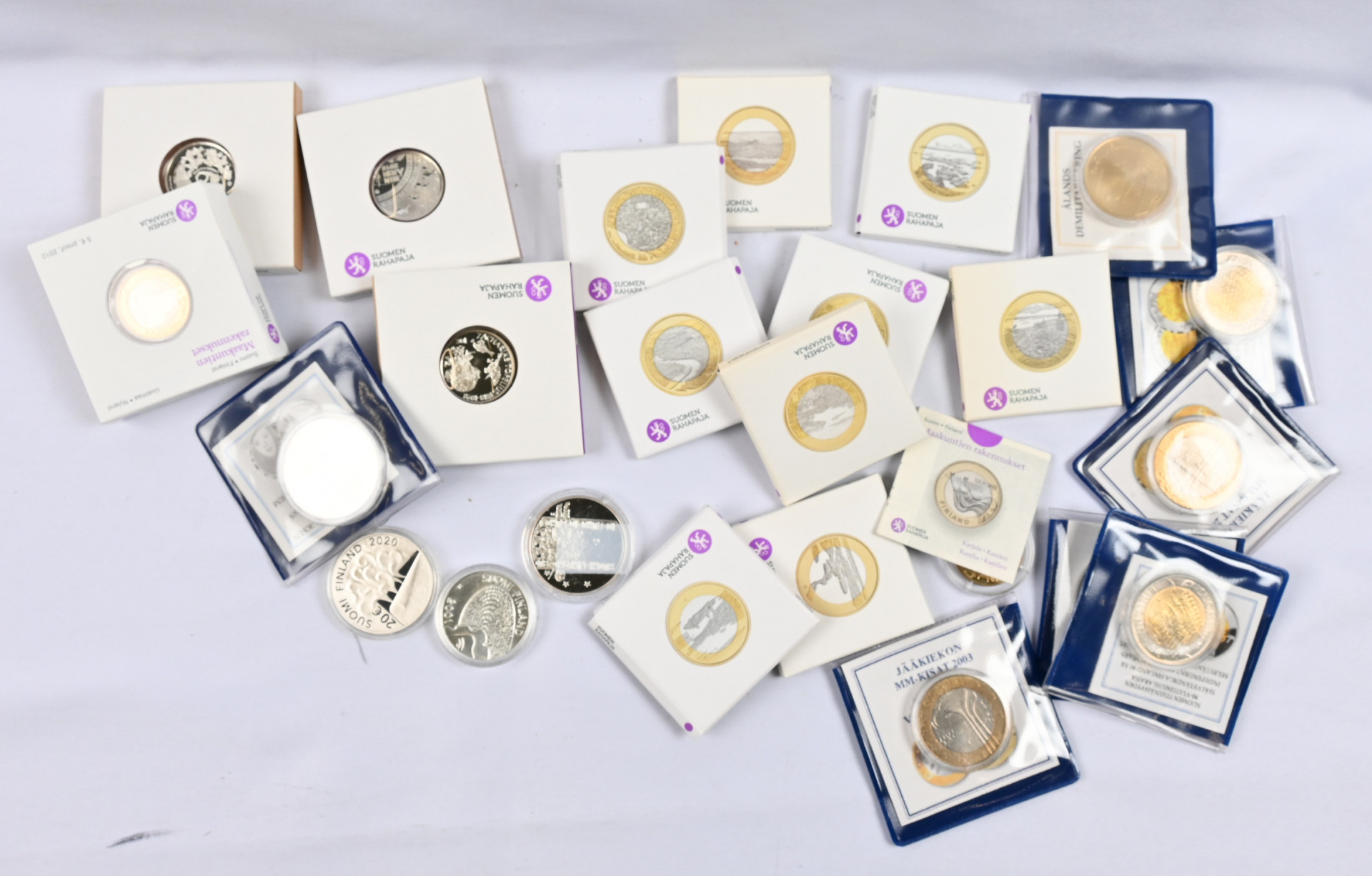 Juhlarahoja erä noin 25 kpl mm. 20€ ja 10€, 5€ ym