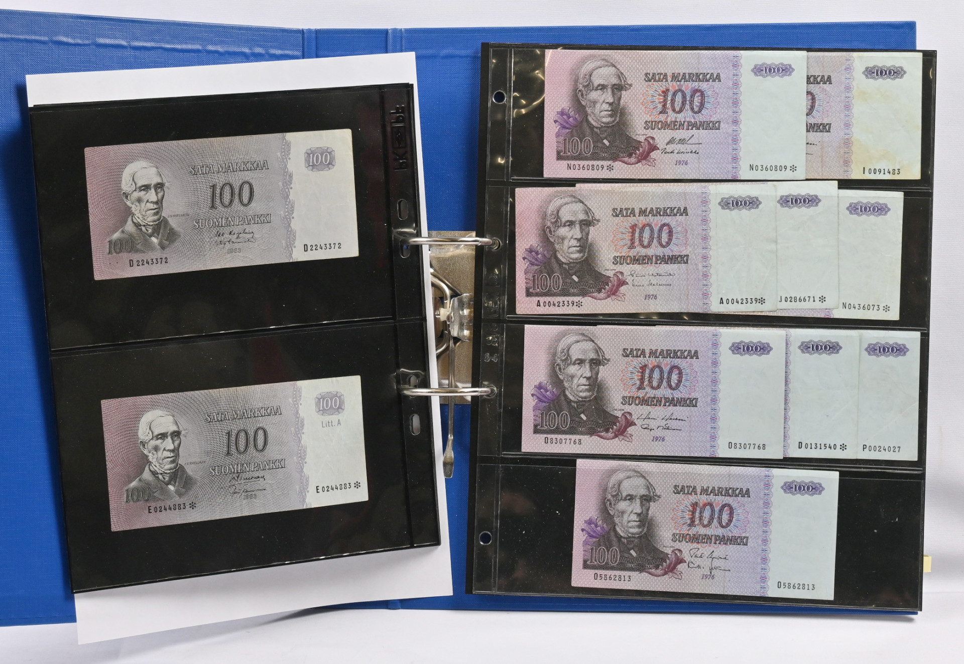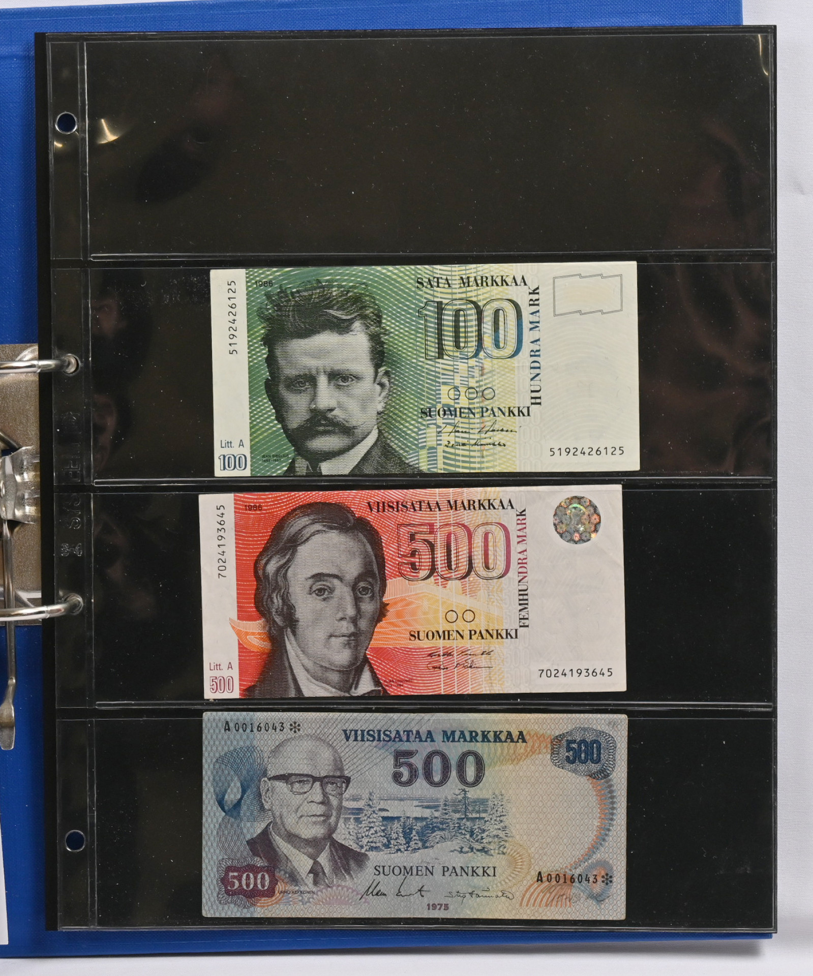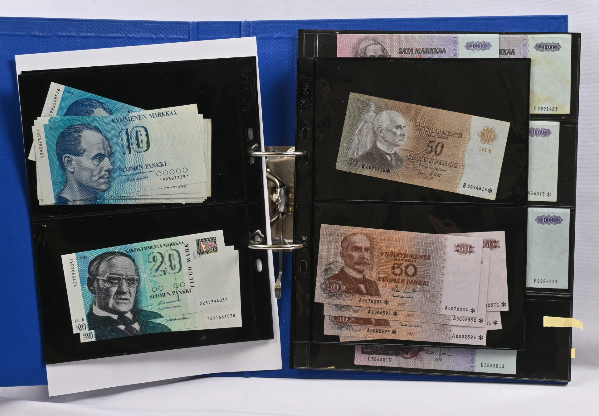 1918 - 1993 hyvä erä lähes 50 seteliä 25 penniä - 500 markkaa. Monta hyvää, mm. 1975 500 markkaa A0016043*, 1986 500 markkaa, 1976 100 markkaa tähti (4), 1963 100 markkaa Litt.A E*, 1977 50 markkaa tähti (5), 1963 50 markkaa Litt.B B tähti ym
