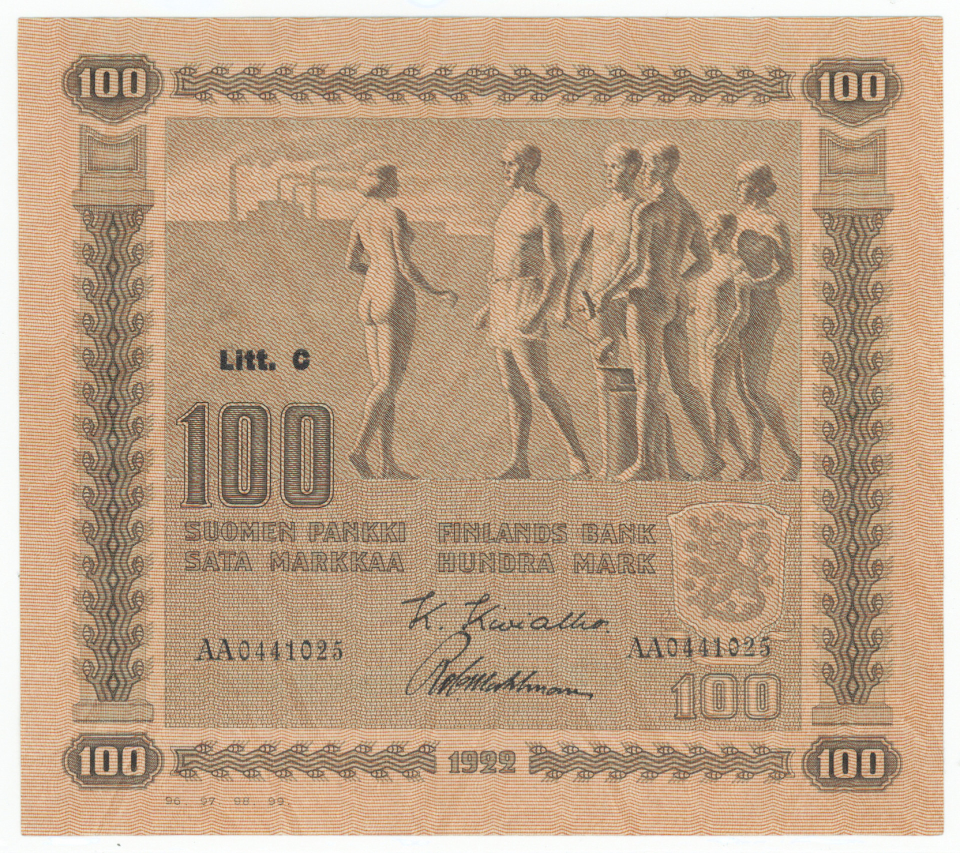 1922 100 markkaa Litt. C upea siirtymä!