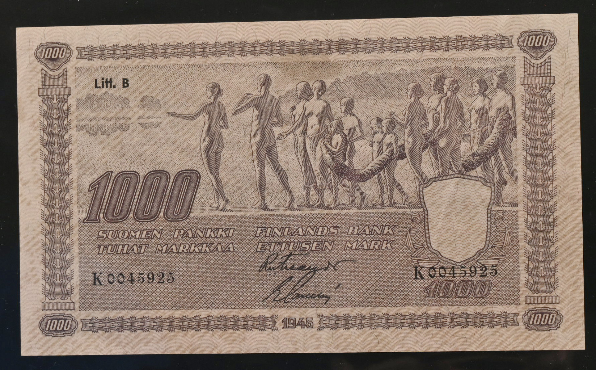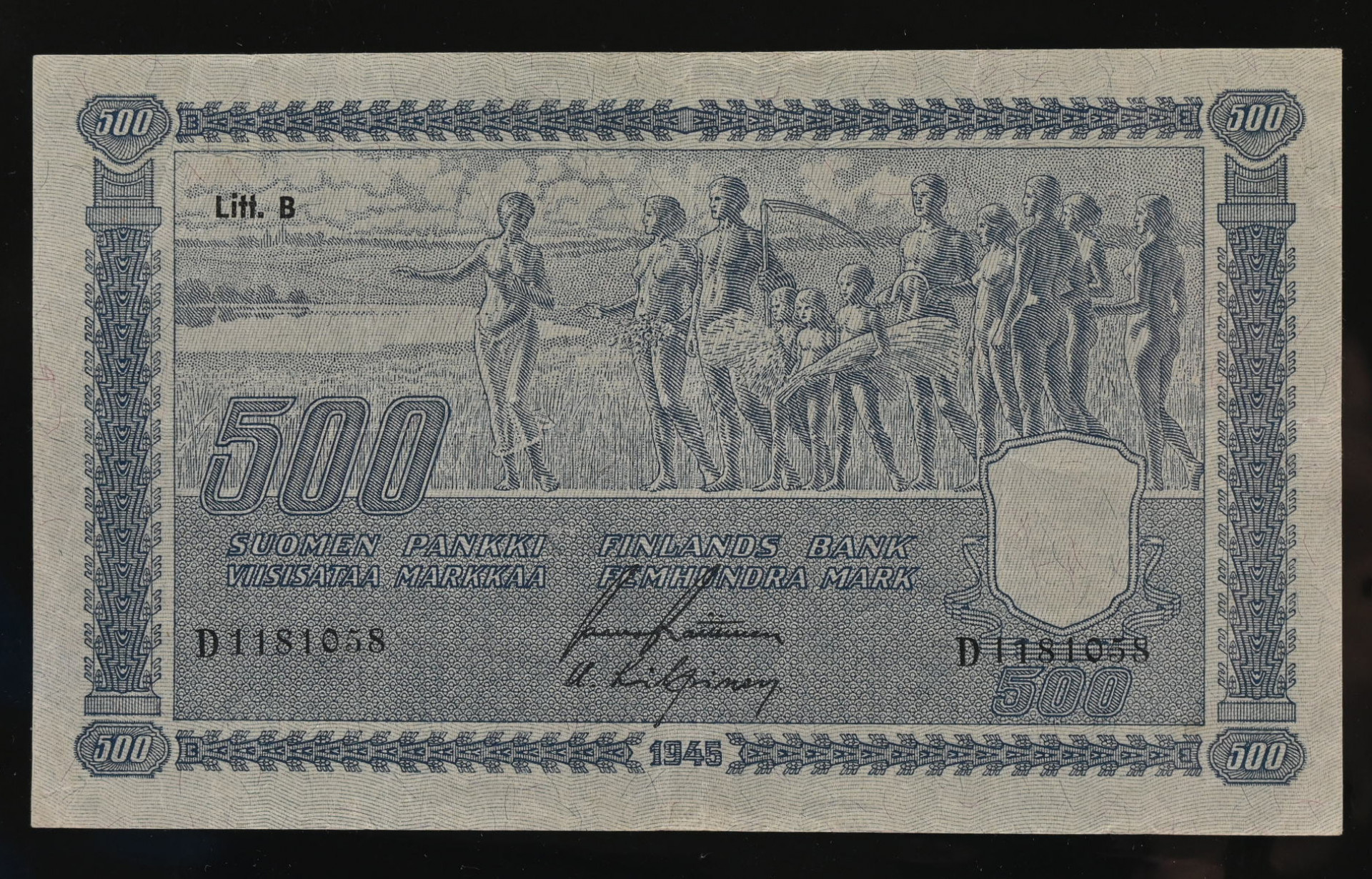 1945 500 markkaa Litt.B (kl. 1) ja 1000 markkaa Litt.B (kl. 1)