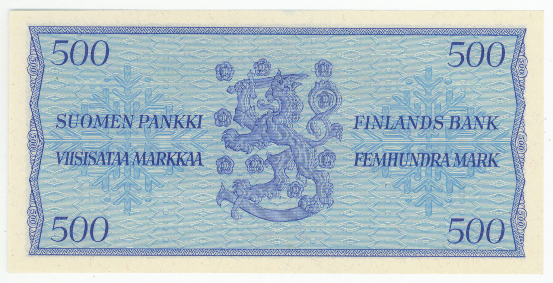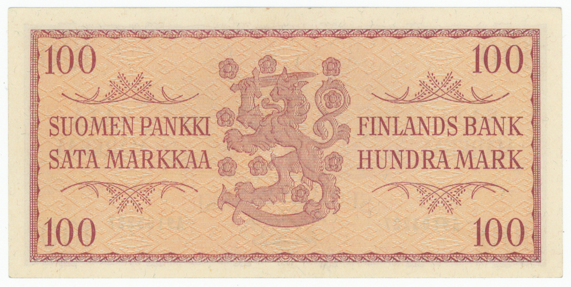1957 100 markkaa, kl 01 ja 1956 500 markkaa valkoinen paperi, kl 01