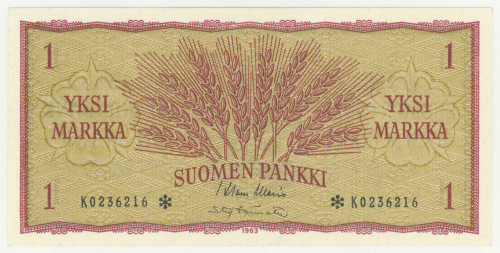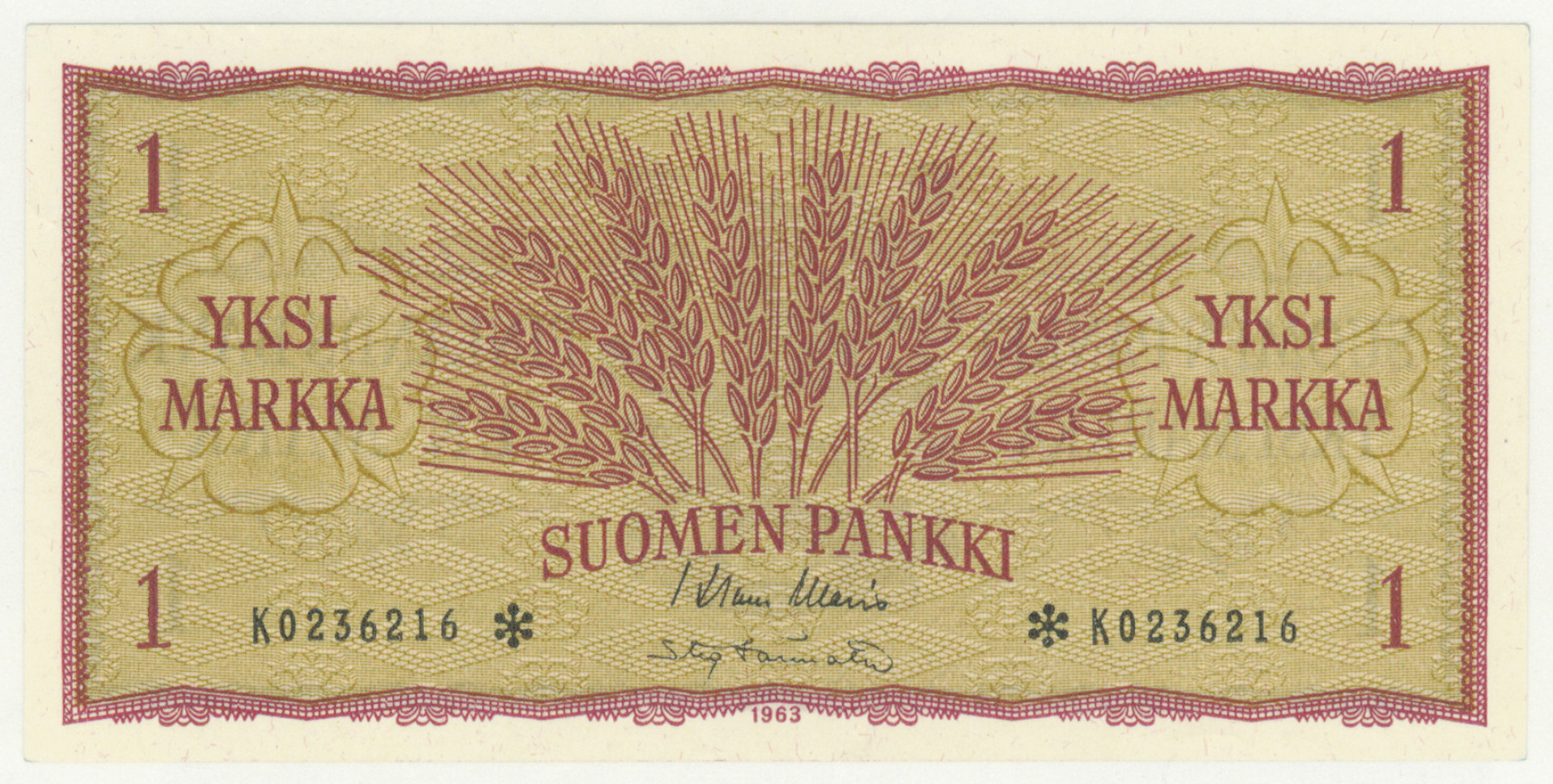 1963 1 markka sarjanumero KO236216 *, kl 0