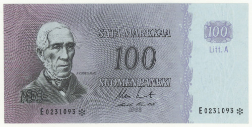 1963 100 markkaa Litt. A sarjanumero E0231093* kl 01