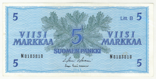 1963 5 markkaa Litt. B sarjanumero N8183818, kl 1