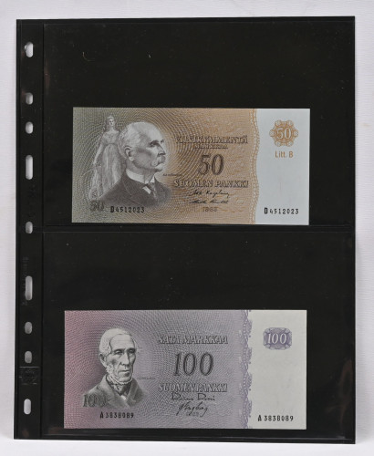 1963 50 markkaa Litt. B, 100 markkaa ja 100 markkaa Litt. A, kl 01/1+