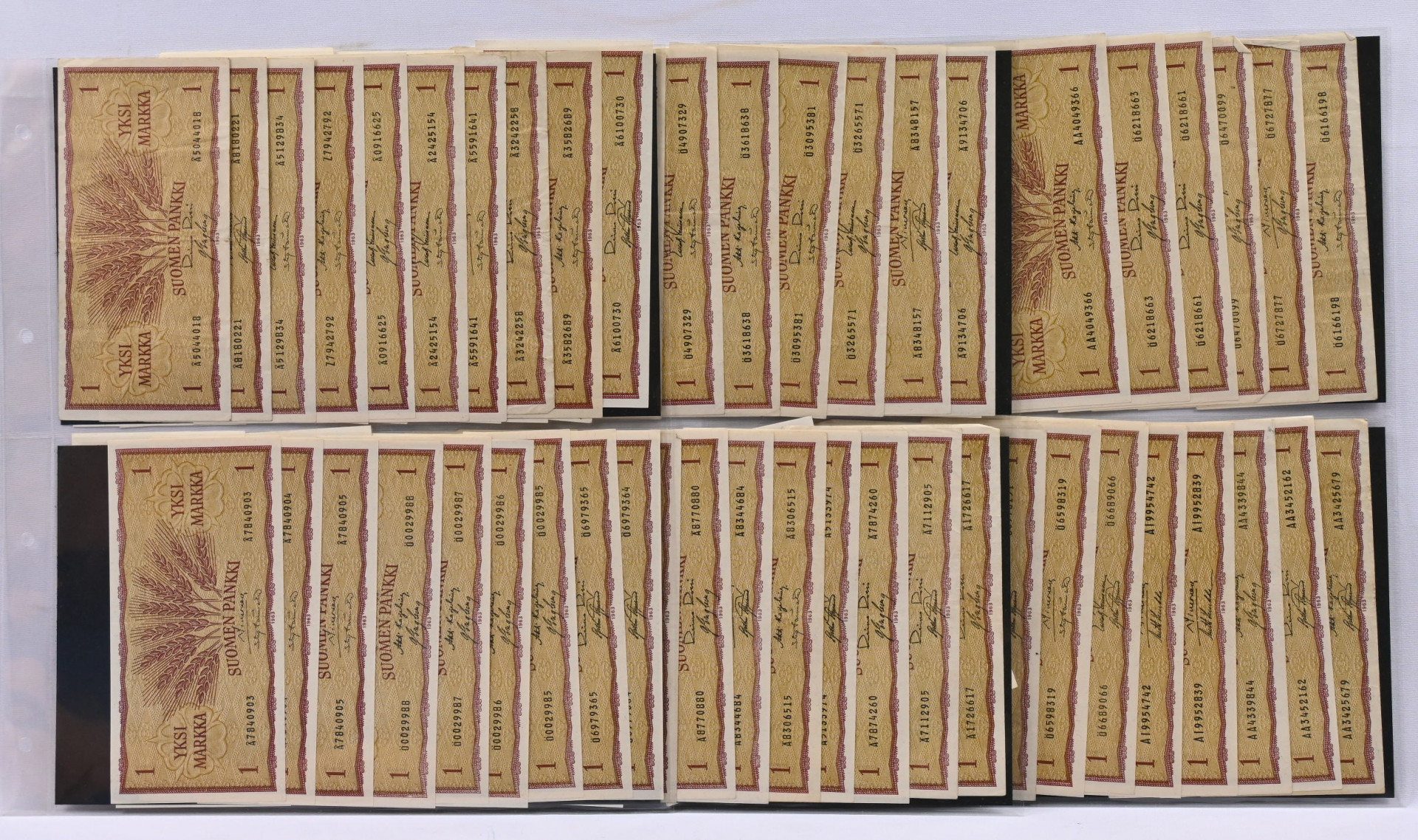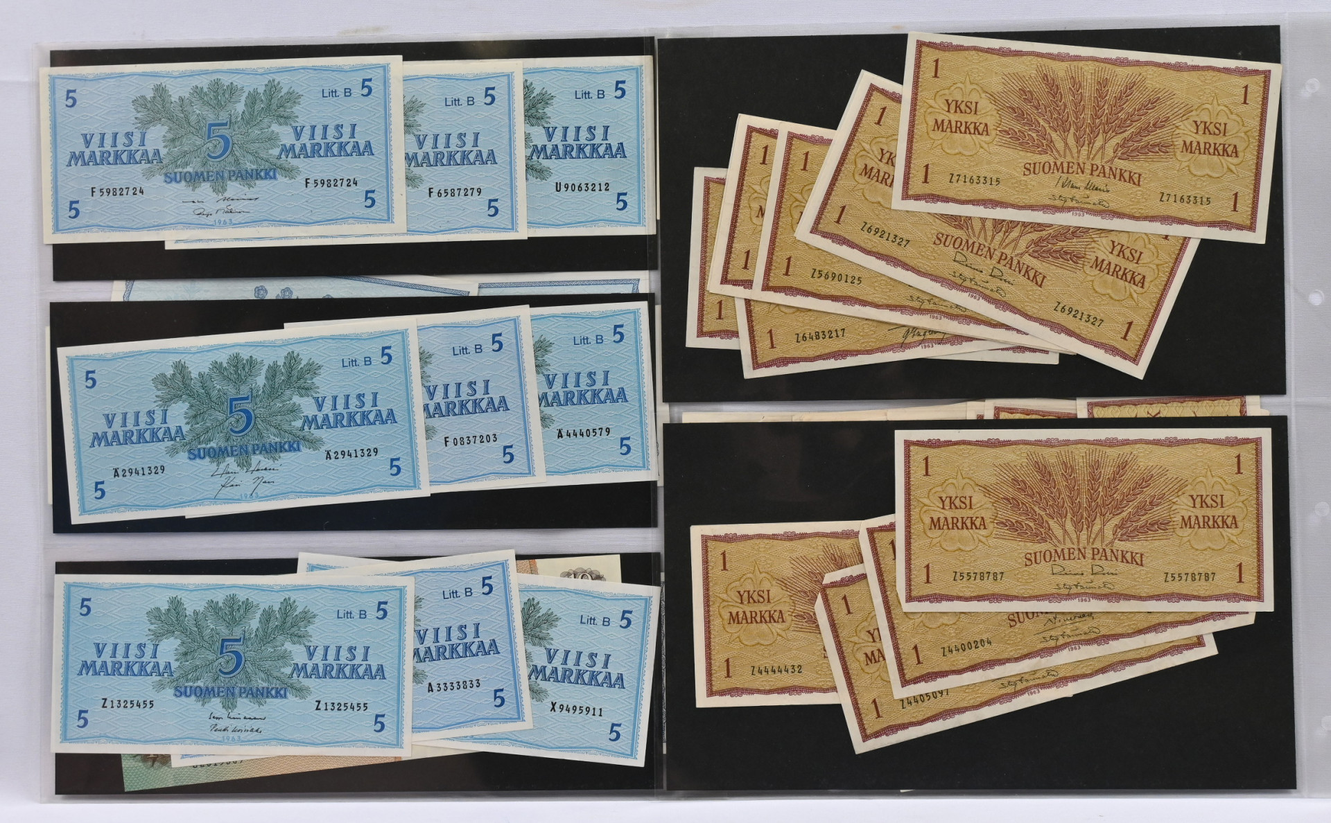 Seteleitä erä lähinnä 1963 1 markkaa mm. peräkkäsiä numeroita ym