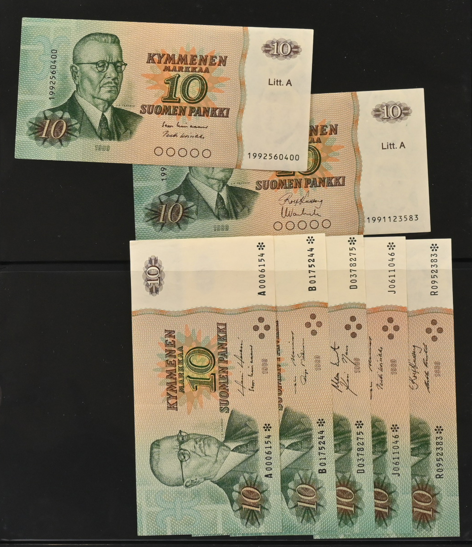 Erä 1980 10 markkaa tähtirahat kirjaimet A, B, D, J ja R. Lisäksi Litt. A sarjanumerot 1991... ja 1992... kl keskimäärin 0-/01