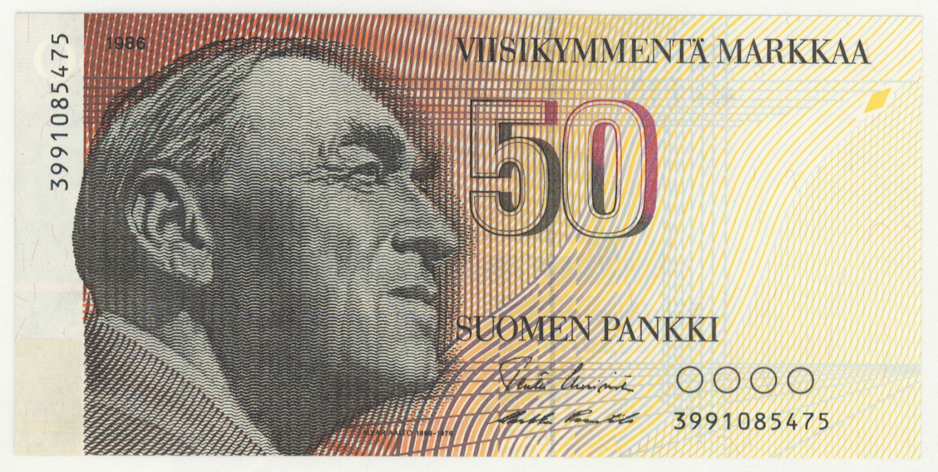 1986 50 markkaa korvaava seteli nro 3991... kl 01-