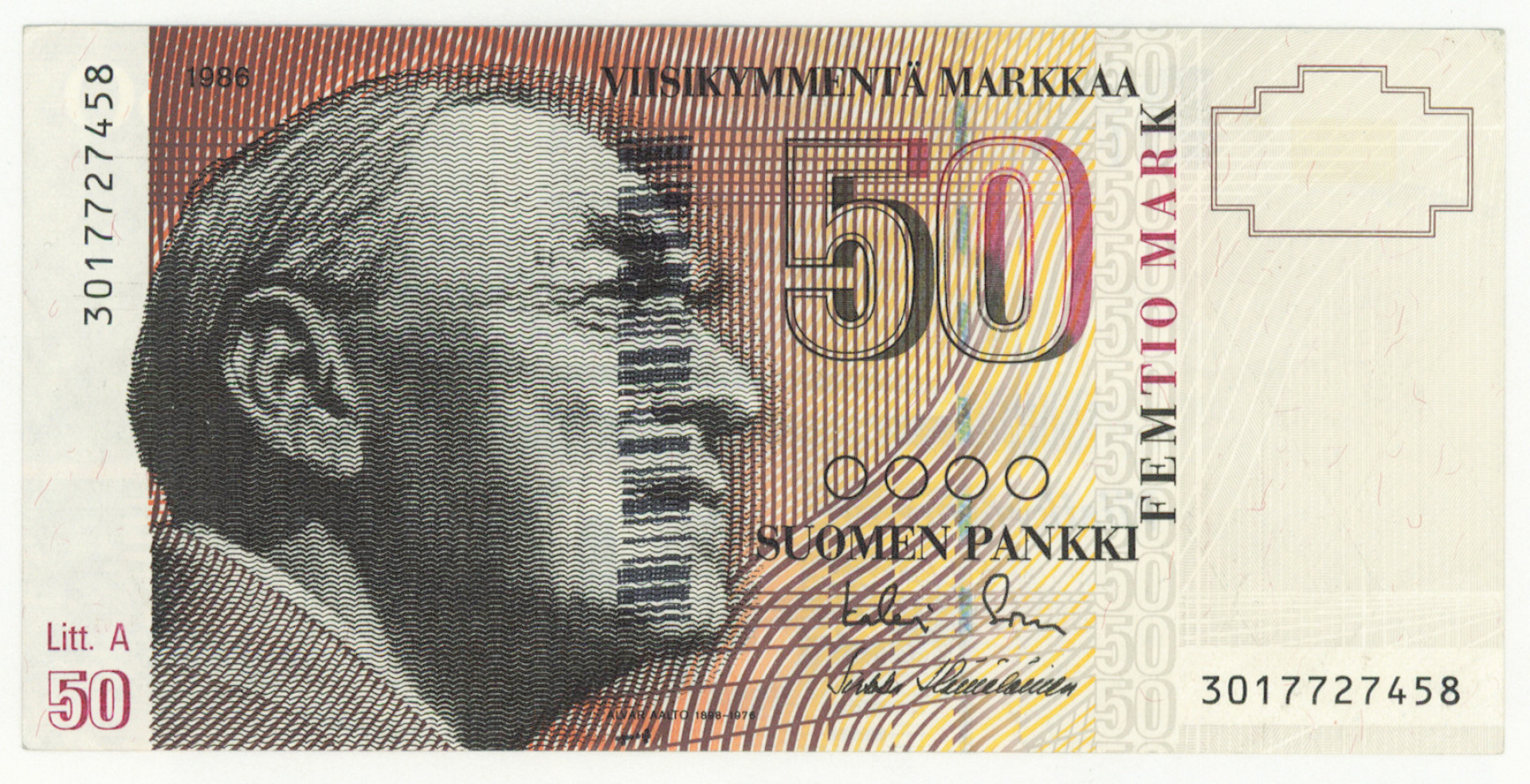 1986 50 markkaa Litt. A ylimääräinen painatus!